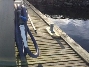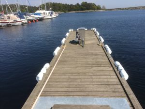 Med en del skrovtyper har det varit svårt att lägga till vid toatömningsbryggan utan att riskera att repa skrovet mot pollarna. Därför har Leif och Olle varit bussiga och flyttat in pollarna. Kanske kommer det lämplig avfendring också vad det lider.