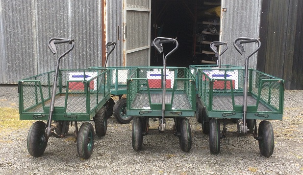 Nu har klubbens fyrhjuliga vagnar fått omfattande och välbehövlig översyn av hjullager, däck, förstärkningar, lack, tätningar mm. Parkeringsbroms finns numera också på vagnarna.